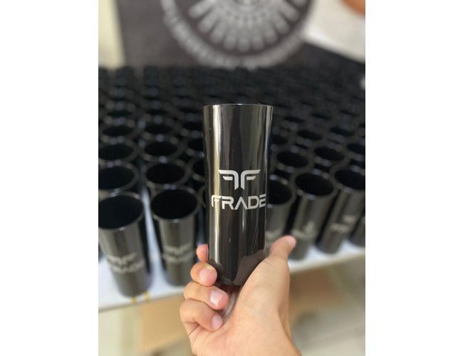 - A personalização é realizada de forma artesanal e é realizado um processo de transferência ou silk, com uma tinta especifica para acrílico, fazendo com que a arte fixe direto na peça (o processo utilizado irá depender da quantidade de peças e da arte escolhida).
