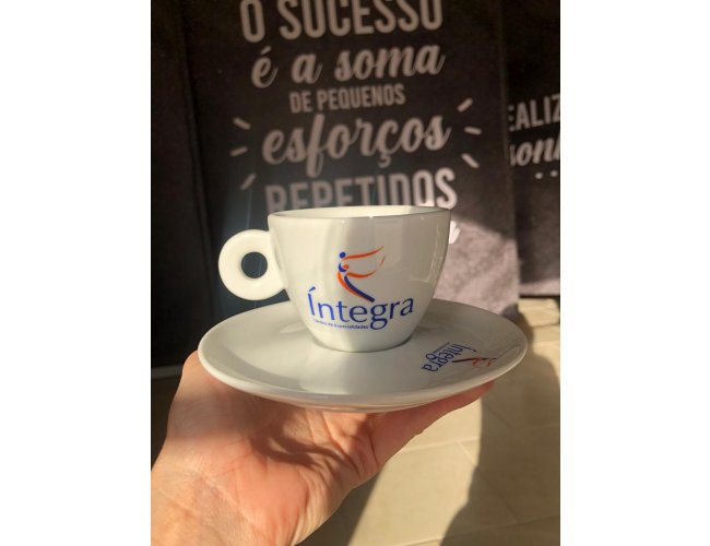 • Valores referentes à personalização na xícara, acompanhado do pires sem personalizar